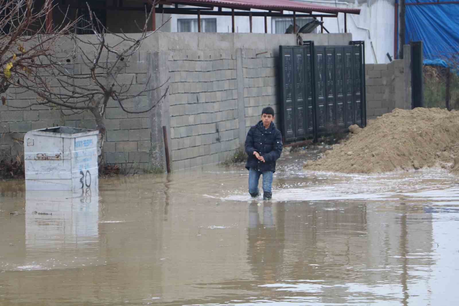 Son günlerde etkili olan yağışla 3 kilometre mesafedeki derenin taşarak evlerini su içerisinde bıraktığını belirten Hasan Karakaya, “Evlerimiz su altında. Yağış 4-5 gündür etkili. Şuan yağış durdu. Dere 3 kilometre aşağıdaydı, buraya kadar geldi. Şuan her yer su altında” ifadelerini verdi.