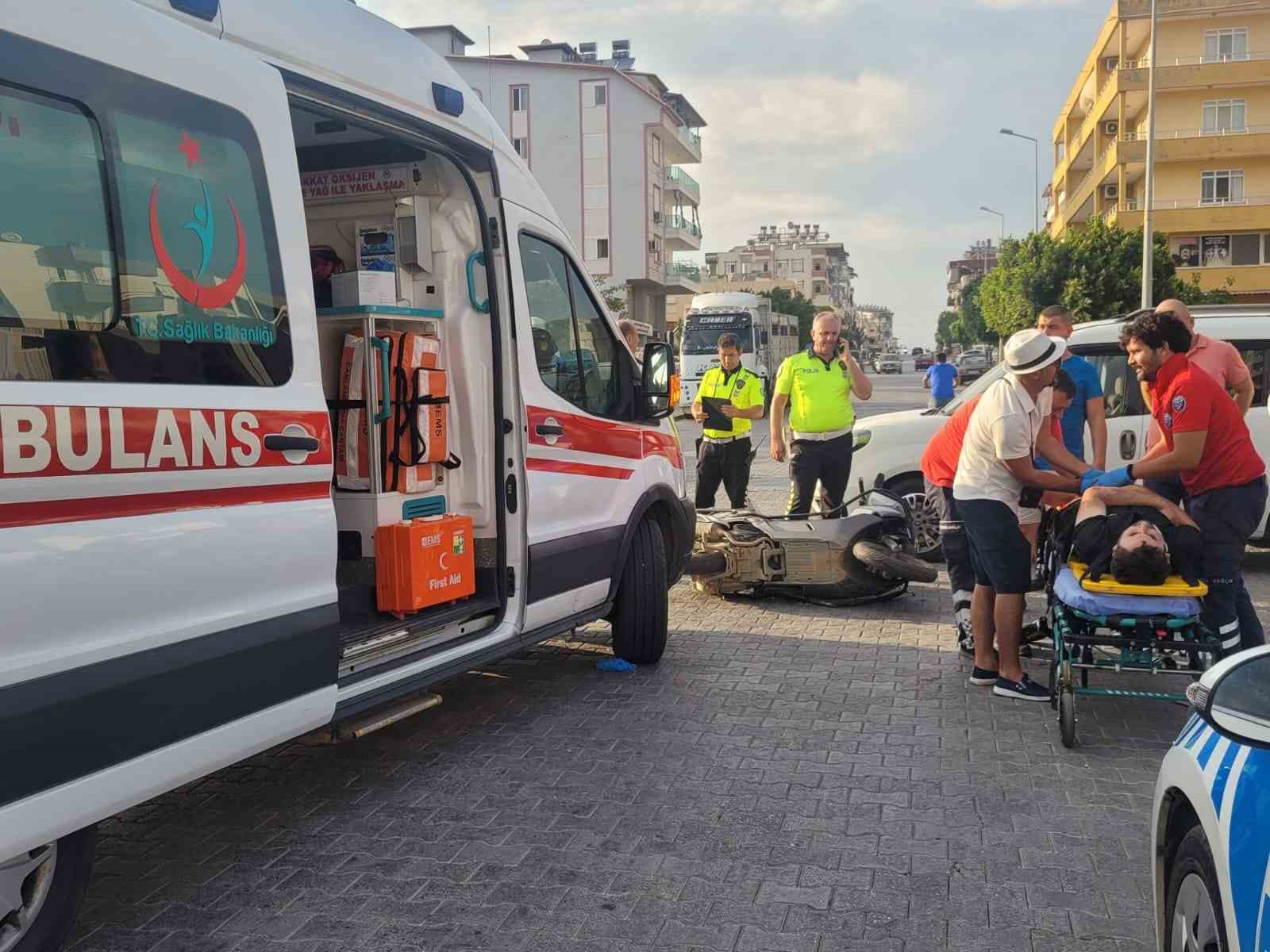 Antalya’nın Gazipaşa ilçesinde hafif ticari araç ile motosikletin çarpışması sonucu meydana gelen kazada motosiklet sürücüsü yaralandı.