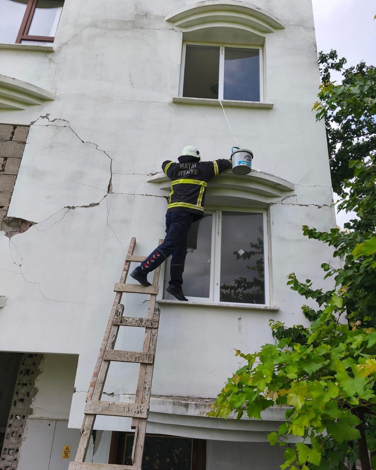 Hatay’da hasarlı binada mahsur kalan kediyi itfaiye ekipleri kurtardı.