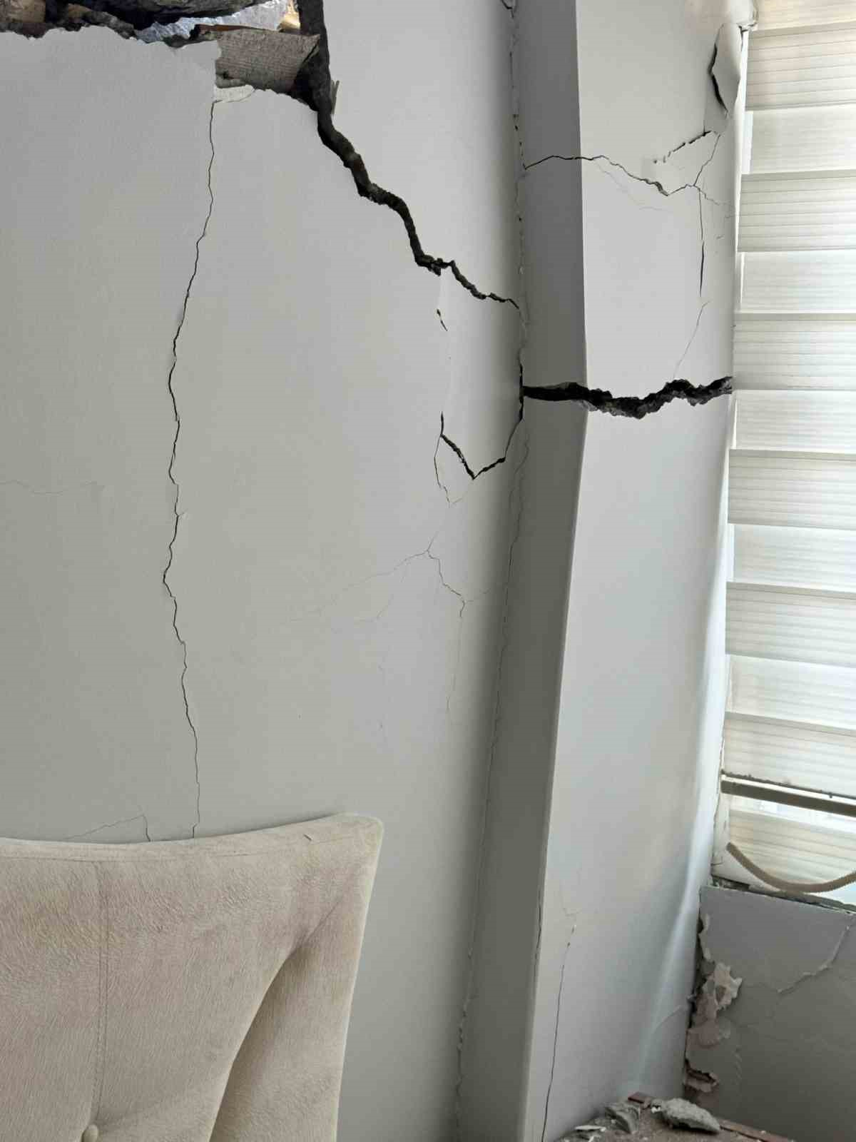 Kahramanmaraş merkezli depremlerde yerle bir olan Hatay’da 25 bine yakın insan vefat etmiş on binlerce bina yıkılmıştı. Kentte, 6 Şubat 2023’te meydana gelen asrın felaketinin ardından ağır hasar alan ve mahkeme süreci tamamlanan binaların yıkımları sürüyor. İskenderun ilçesi Kurtuluş Mahallesi’nde ağır hasar alan 5 katlı binanın yıkımı için polis güvenlik önlemi aldı, çevre binalardaki vatandaşları tahliye etti. Ardından iş makineleriyle yıkımına başlanan binanın duvarı, yan tarafında bulunan 6 katlı apartmana çarparak duvar ve kolona hasar verdi. İhbar üzerine olay yerine gelen ekipler, hasar alan binada inceleme başlatıldı.