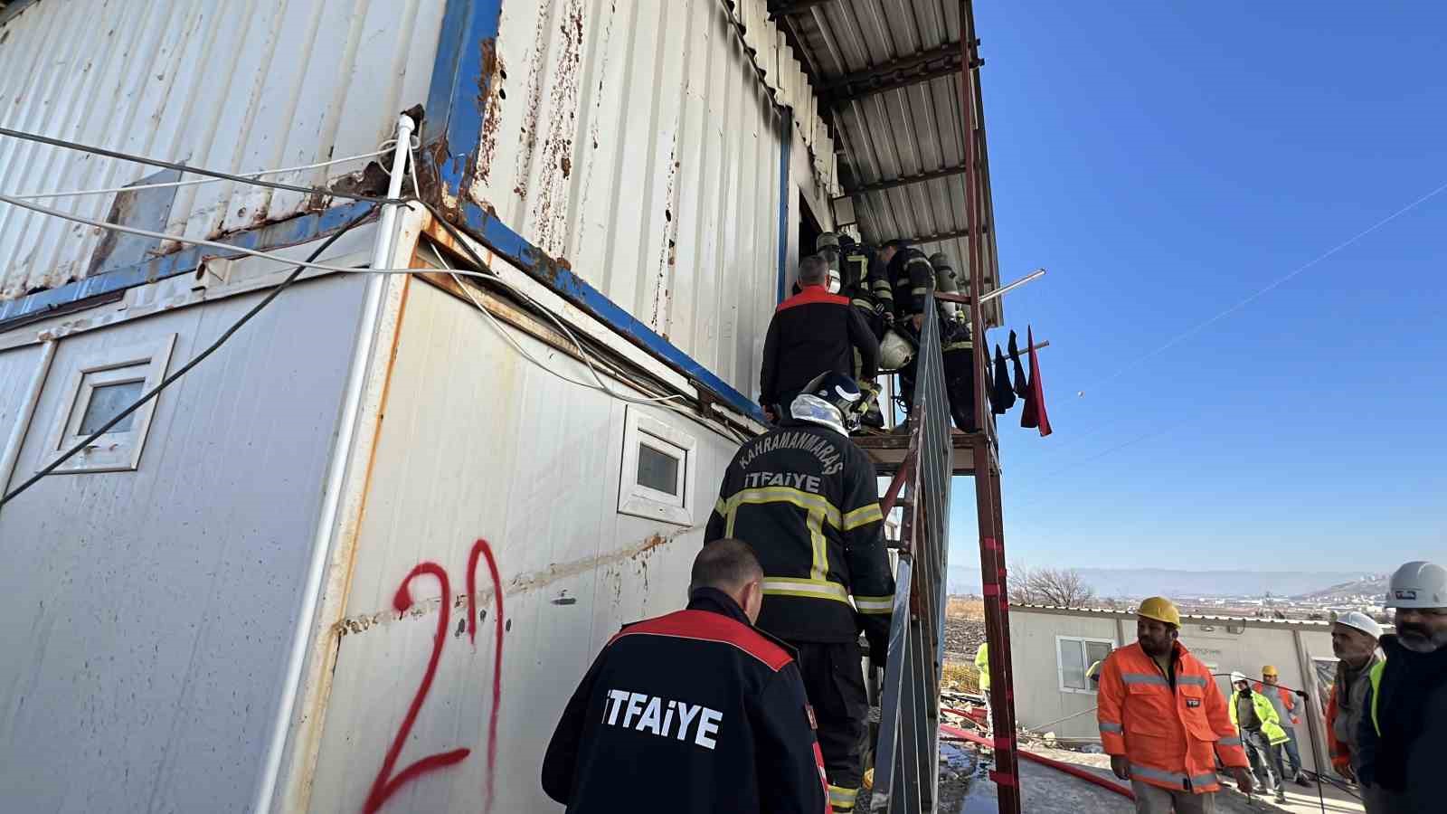 Kahramanmaraş’ta 400 yataklı acil durum hastanesinin inşaatında işçilerin kaldığı konteynerde çıkan yangın itfaiye ekipleri tarafından söndürüldü.