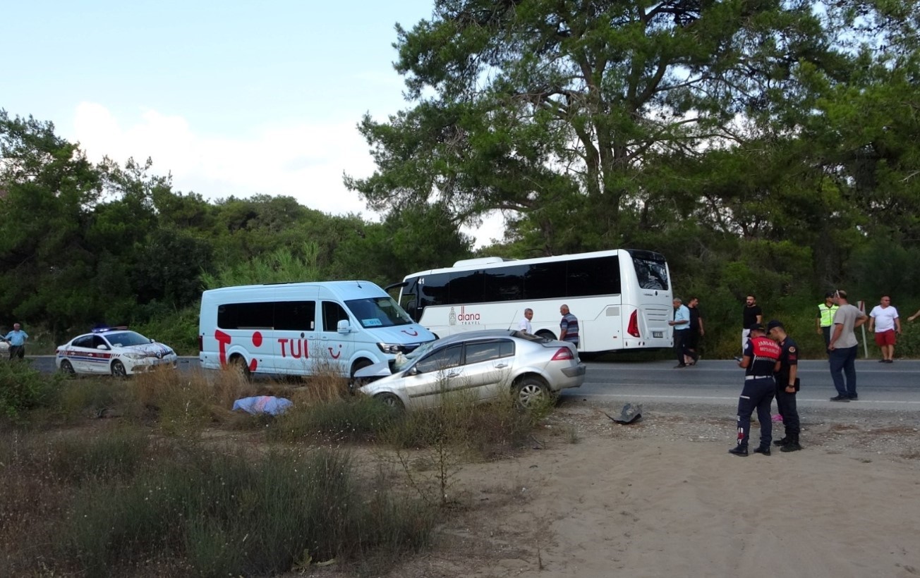 Manavgat’ta arkadaşından ödünç aldığı otomobil ile hatalı sollama yapan sürücü önce karşı yönden gelen tur otobüsüne çarptı. Ardından solladığı araç ile kafa kafaya çarpışarak ön camdan fırlayan sürücü hayatını kaybetti.