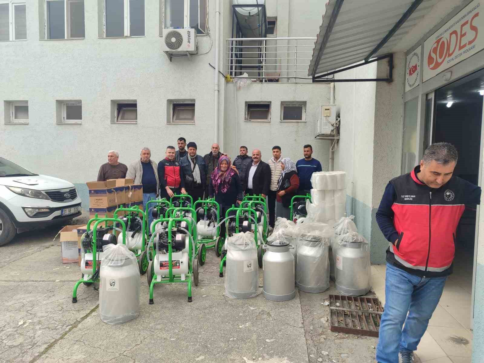 Hatay’da besicilere yüzde 95 hibe destekli süt sağım makinesi ve hijyen paketi dağıtıldı.
