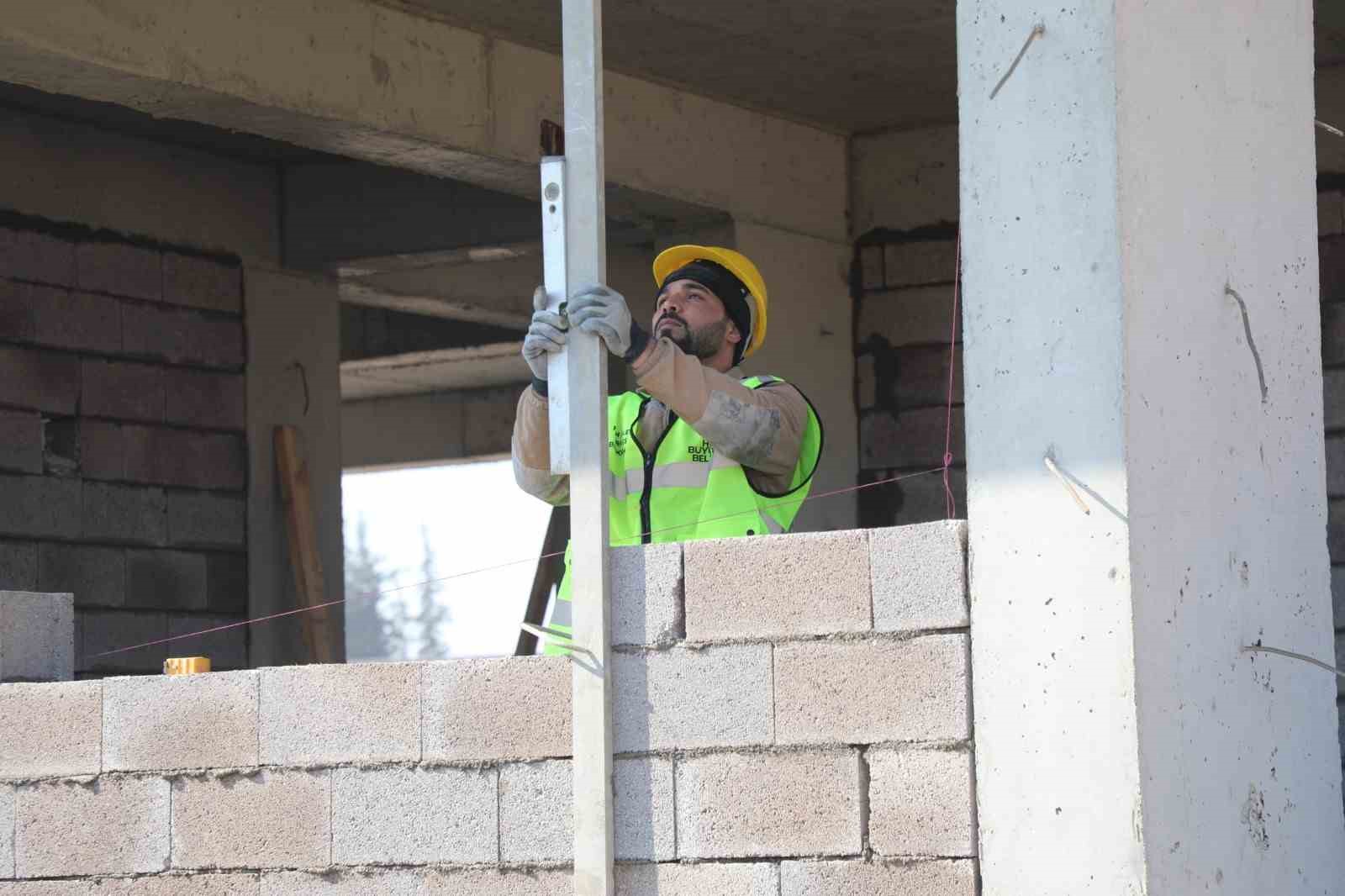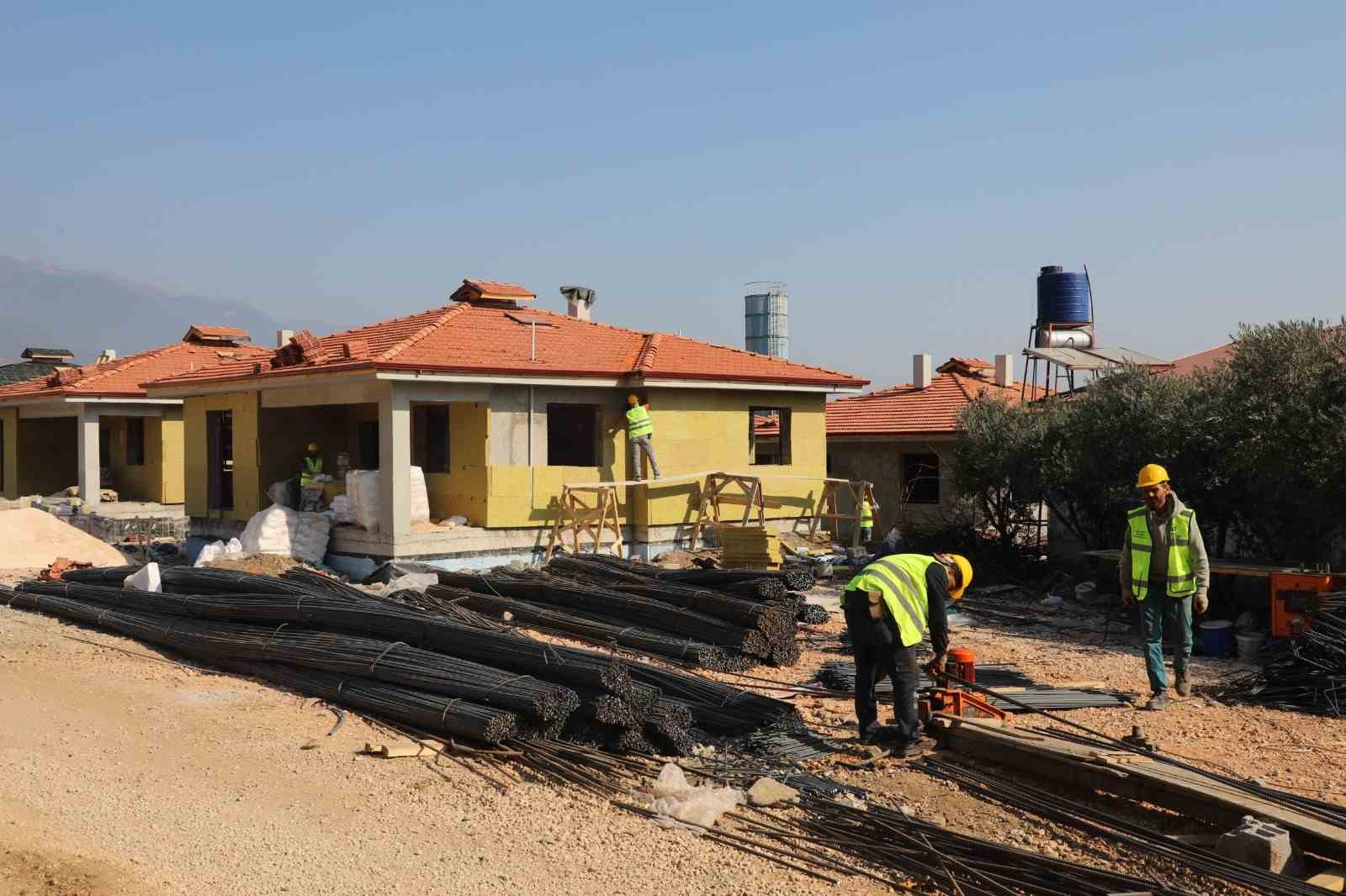 Hatay Büyükşehir Belediyesi’nce kırsal dönüşüm hamlesi kapsamında inşa edilen 28 konut yükselmeye devam ediyor.
