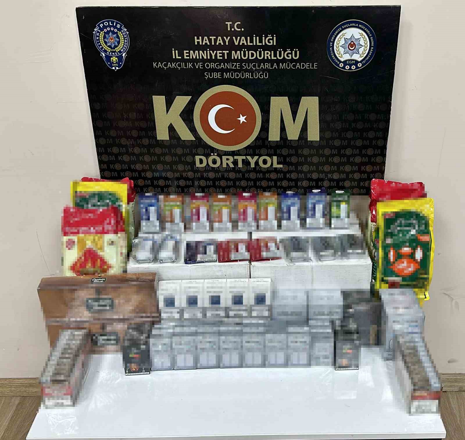 Hatay Emniyet Müdürlüğü görevlilerince kaçakçılık olaylarına yönelik yapılan çalışmalarda Payas Çağlalık Mahallesi’nde bulunan bir iş yeri ve ikamette, Dörtyol Numune Evler Mahallesi’nde durdurulan R.Ç. adlı şahsın yapılan üst aramasında; gümrük kaçağı 12 bin 400 adet makaron, bin 170 paket sigara, 980 adet doldurulmuş makaron, 9 adet elektronik sigara likiti, 14 adet elektronik sigara, 100 adet puro, 3 kilogram kaçak çay, 400 gram nargile tütünü ele geçirildi. Olayla ilgili olarak R.Ç., F.A. ve M.S. hakkında adli işlem yapıldı.