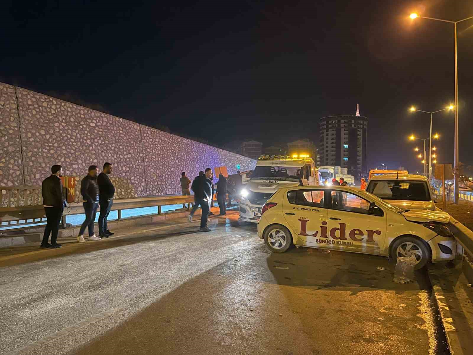 Kaza, Antakya çevreyolu Adliye kavşağında yaşandı. Sürücüsünün kontrol hakimiyetini kaybettiği Volkswagen marka 52 AY 487 plakalı araç, refüje çıktı. Aynı bölgede Hyundai marka 31 ABH 692 plakalı otomobil ve Opel marka 35 ATA 545 plakalı hafif ticari araç çarpıştı. İhbar üzerine olay yerine sağlık, polis ve itfaiye ekibi sevk edildi. Yaralanan 2 kişi, sağlık ekiplerince hastaneye kaldırıldı. Refüje çıkan araç vinç yardımıyla, diğer 2 araç ise çekiciyle olay yerinden kaldırıldı.