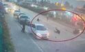Motosikletin çarptığı 2 yayayı havaya uçurduğu anlar kamerada