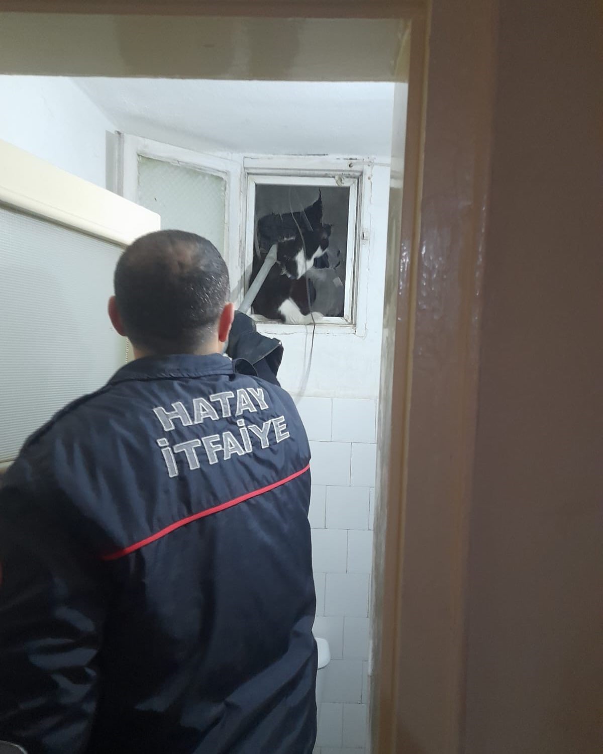 İskenderun ilçesi Hürriyet Mahallesi Yavuz Sultan Selim Caddesi üzerinde bulunan bir binanın havalandırma boşluğundan gelen kedi sesini fark eden vatandaş durumu itfaiye ekiplerine bildirdi. İhbar üzerine bölgeye itfaiye ekibi sevk edildi. İtfaiye ekipleri, kediyi özel aparatla yakalayarak hava boşluğundan kurtardı. Ekiplerin titiz çalışmasıyla sağlıklı bir şekilde kurtarılan kedi sahibine teslim edildi.