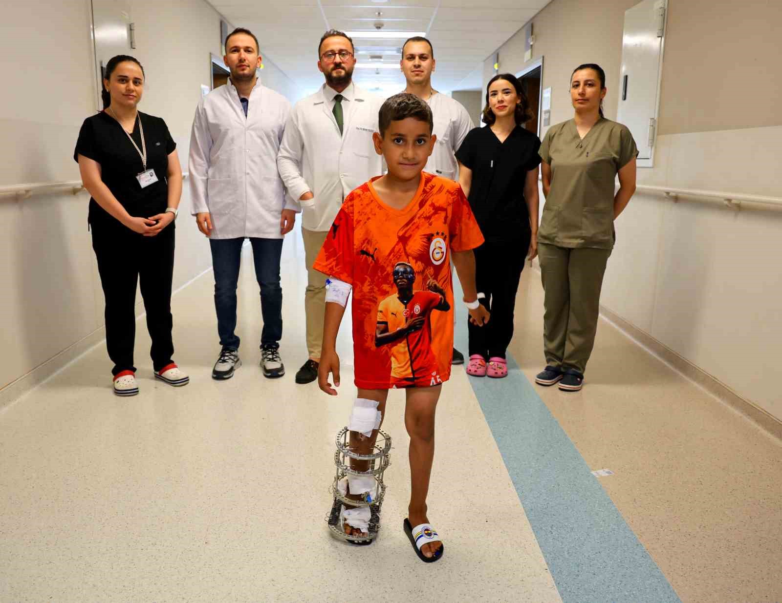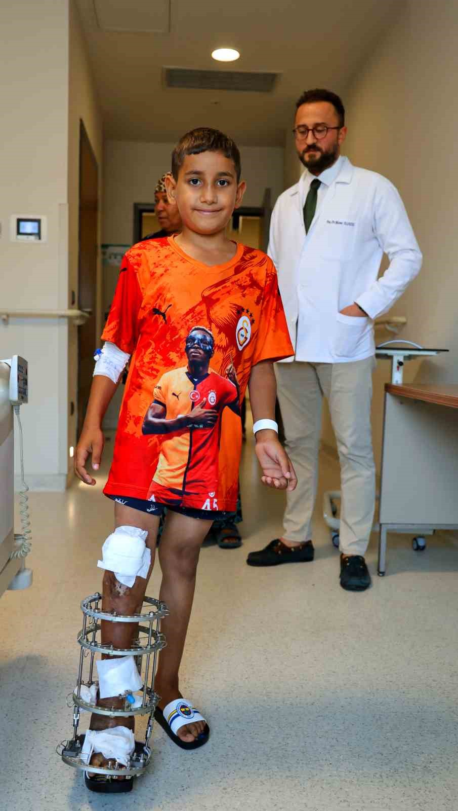 Serdal’ın ameliyat sürecinden bahseden Doç. Dr. Mesut Uluöz, “Serdal, 7 yıldır ayağının üzerine basamıyordu. Şu an ayağındaki kemik kısmı düzelttik. İnşallah yakın zamanda ayağının üzerine de basabilecek. Bu işlemlerden sonra sağlıklı bir çocuk olarak hayatına devam edecek. Kırığın kaynaması zaman alacak. İyi bir beslenmeyle yaklaşık 2 ay içinde iyileşeceğini düşünüyoruz” ifadelerini kullandı.