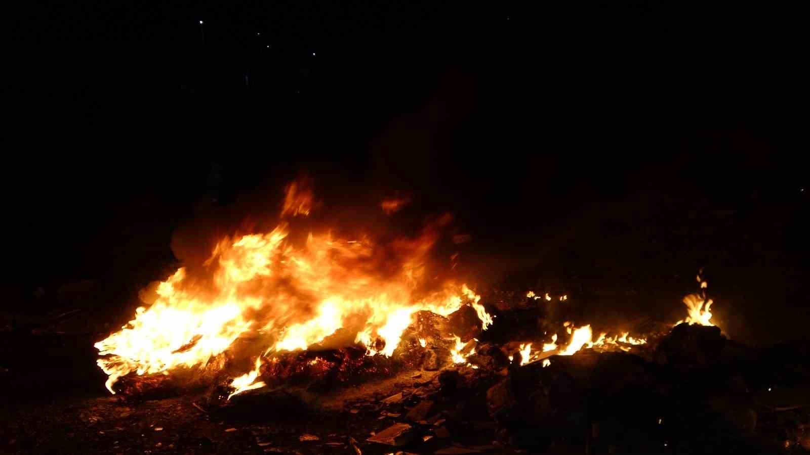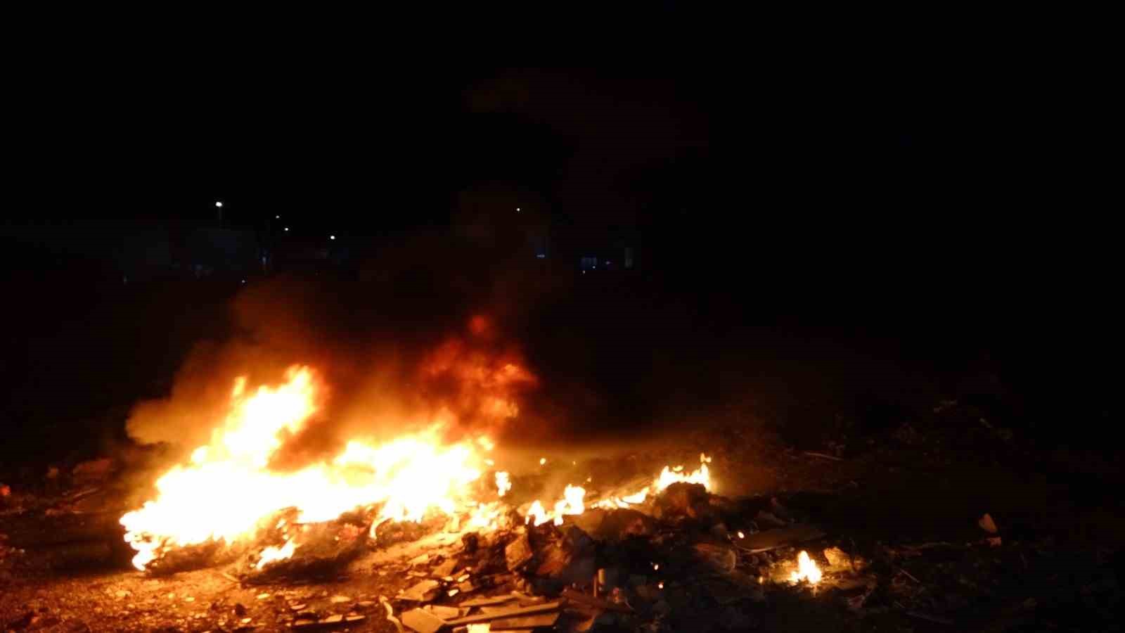 İtfaiye ekiplerinin söndürdüğü yangın bölgesinde, yakılmak üzere hazırlandığı anlaşılan başka hurda lastiklerin bulunduğu görüldü.