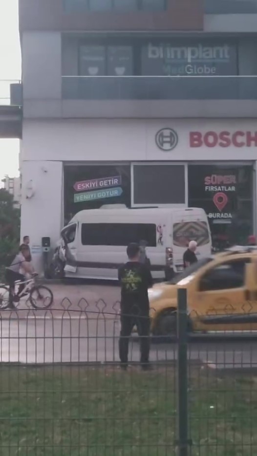 Antalya’da sabah saatlerinde meydana gelen trafik kazasında 2 servis aracı çarpıştı. Araçlardan birisi yol kenarındaki iş yerine çarparak durabildi. O anlar iş yerinin güvenlik kamerası tarafından saniye saniye kaydedildi.