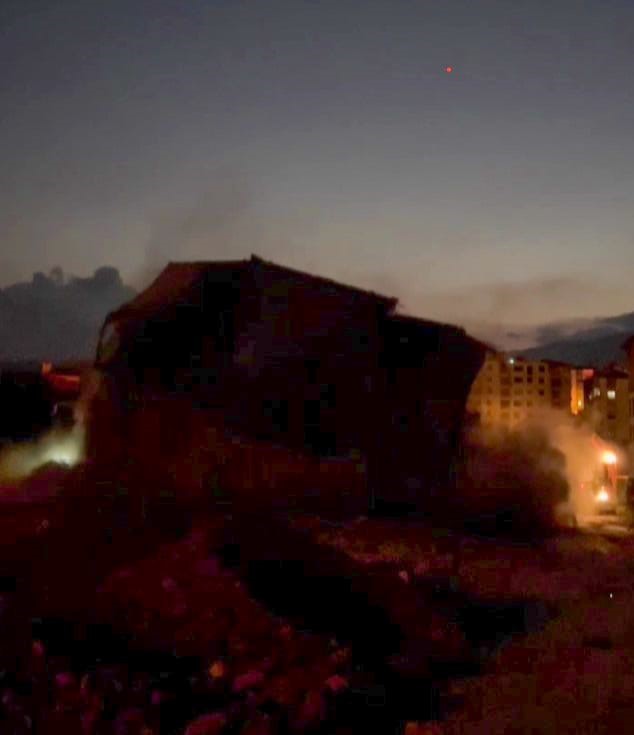 Hatay’ın Antakya ilçesinde iş makinesi operatörünün 6 katlı binayı yere vurarak sarsıntıyla kontrollü olarak yıktığı anlar kameraya yansıdı.