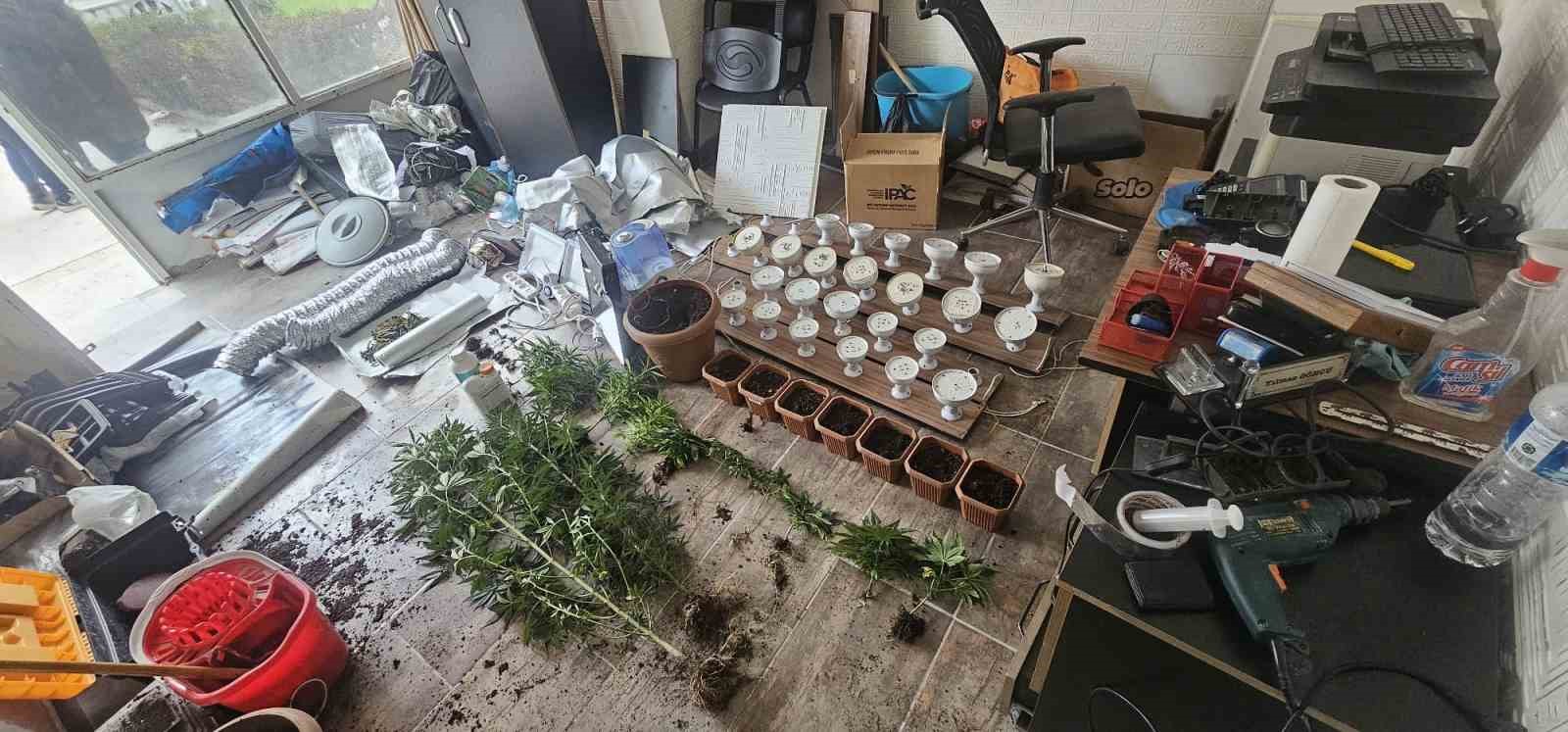 İl Emniyet Müdürlüğü Narkotik Suçlarla Mücadele Şube Müdürlüğü ekipleri, uyuşturucu madde ticareti yaptığı belirlenen Yılmaz G.’yi (44) takibe aldı. Yapılan çalışmada Yılmaz G’nin Çukurova ilçesi Toros Mahallesi’ndeki iş yerine iklimlendirme sistemi kurduğu ve uyuşturucu ürettiği tespit edildi. Adrese yapılan operasyonda, 17 kök hint keneviri, 51 gram kurutulmuş esrar, 26 adet led lamba, güçlendirici adaptör, 2 adet havalandırma aparatı, nemlendirici, ısı ölçer, çadır, projektör, 8 adet saksı ve gübre çözeltisi ele geçirildi. Gözaltına alınan Yusuf G.’nin emniyetteki ifadesinde, “İçmek için uyuşturucu madde yetiştiriyorum. Uyuşturucu madde ticareti yapmıyorum” dediği öne sürüldü. Emniyetteki işlemlerinin ardından adliyeye sevk edilen şüpheli çıkarıldığı mahkemece tutuklandı.