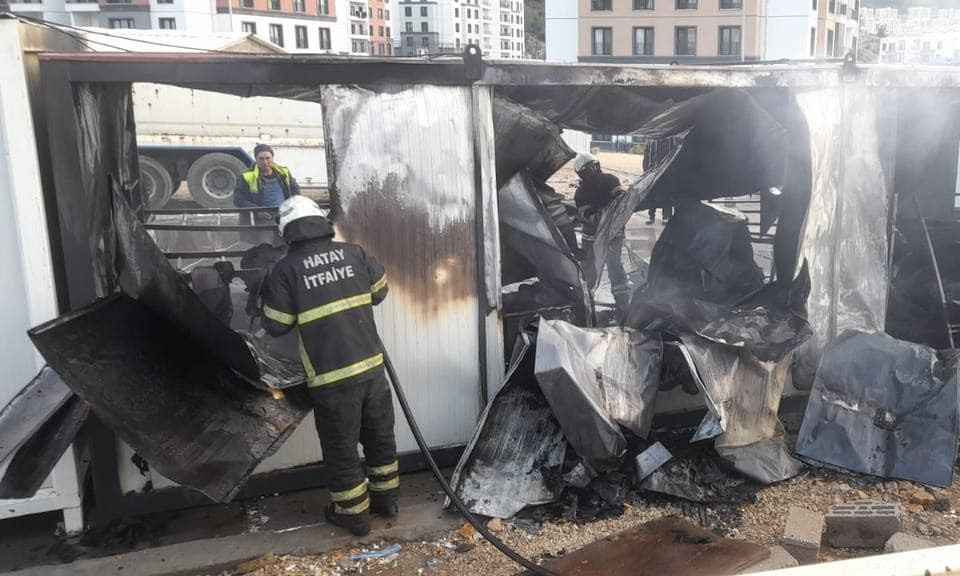 Hatay’ın İskenderun ilçesinde şantiye personelinin kaldığı konteyner yanarak kullanılmaz hale geldi.