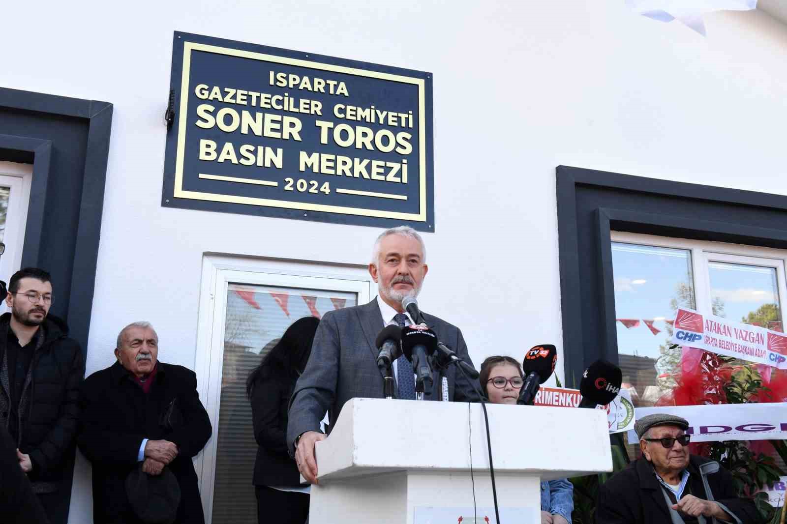 Göreve geldiği günden bu yana Isparta’ya vizyon ve değer katan Belediye Başkanı Şükrü Başdeğirmen, sivil toplum kuruluşlarından gelen talepleri de geri çevirmiyor. Bu kapsamda basın merkezi talebini olumlu karşılayan Başkan Başdeğirmen, Sanayi Mahallesi 104. Caddedeki Soner Toros Parkı alanı içerisine bir basın merkezi inşa edilmesi talimatını verdi. Çalışmaları tamamlanan basın merkezine 29 Nisan 2021 tarihinde Covid-19 nedeniyle hayatını kaybeden şehrin sevilen ismi gazeteci merhum Soner Toros’un adı verildi.