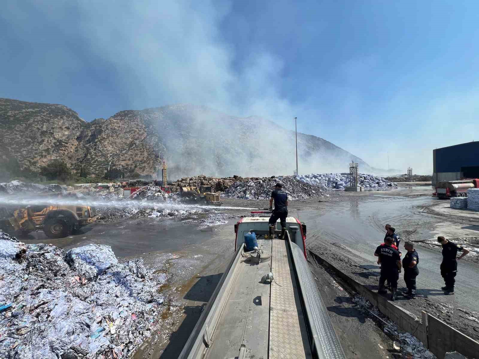 Isparta Belediyesi İtfaiye Müdürlüğü ekipleri, Aydın’ın Söke ilçesindeki bir kağıt fabrikasında 12 Temmuz’da çıkan yangını söndürme çalışmalarına destek veriyor.