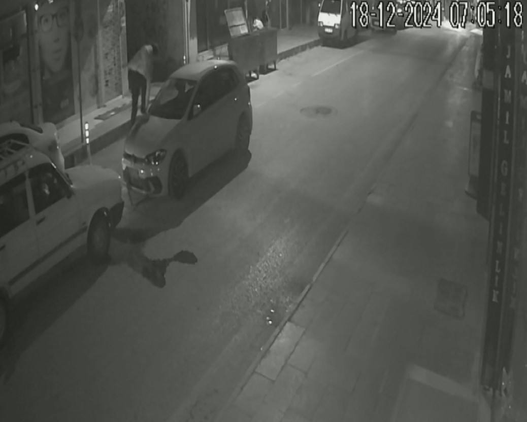 Olay, çevredeki güvenlik kameralarına kaydedildi. Görüntülerde, R.B.’nin aracıyla park halindeki bir başka araca defalarca çarptığı, ardından elindeki demir cisimle araca ve bir apartmanın kapısına zarar verdiği, son olarak ise aracın sahibi E.İ.’ye saldırmaya çalıştığı anlar yer aldı.