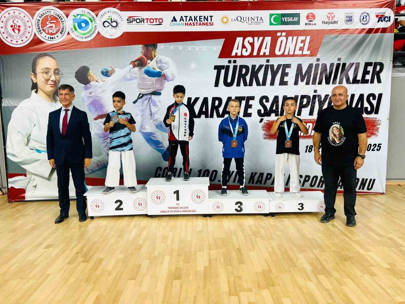 Tekirdağ’ın Çorlu ilçesinde düzenlenen Asya Önel Minikler Türkiye Karate Şampiyonası’nda mücadele eden Ispartalı Yalın Berk Türker (9) Türkiye şampiyonu oldu.