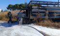 Seyir halindeyken alev alan kamyon kullanılmaz hale geldi