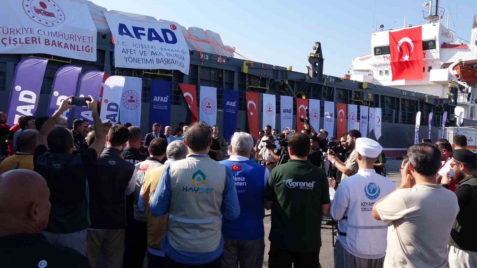 Konuşmaların ardından yardım gemisi, yapılan dualar eşliğinde Somali’ye gitmek üzere Mersin Limanı’ndan hareket etti.