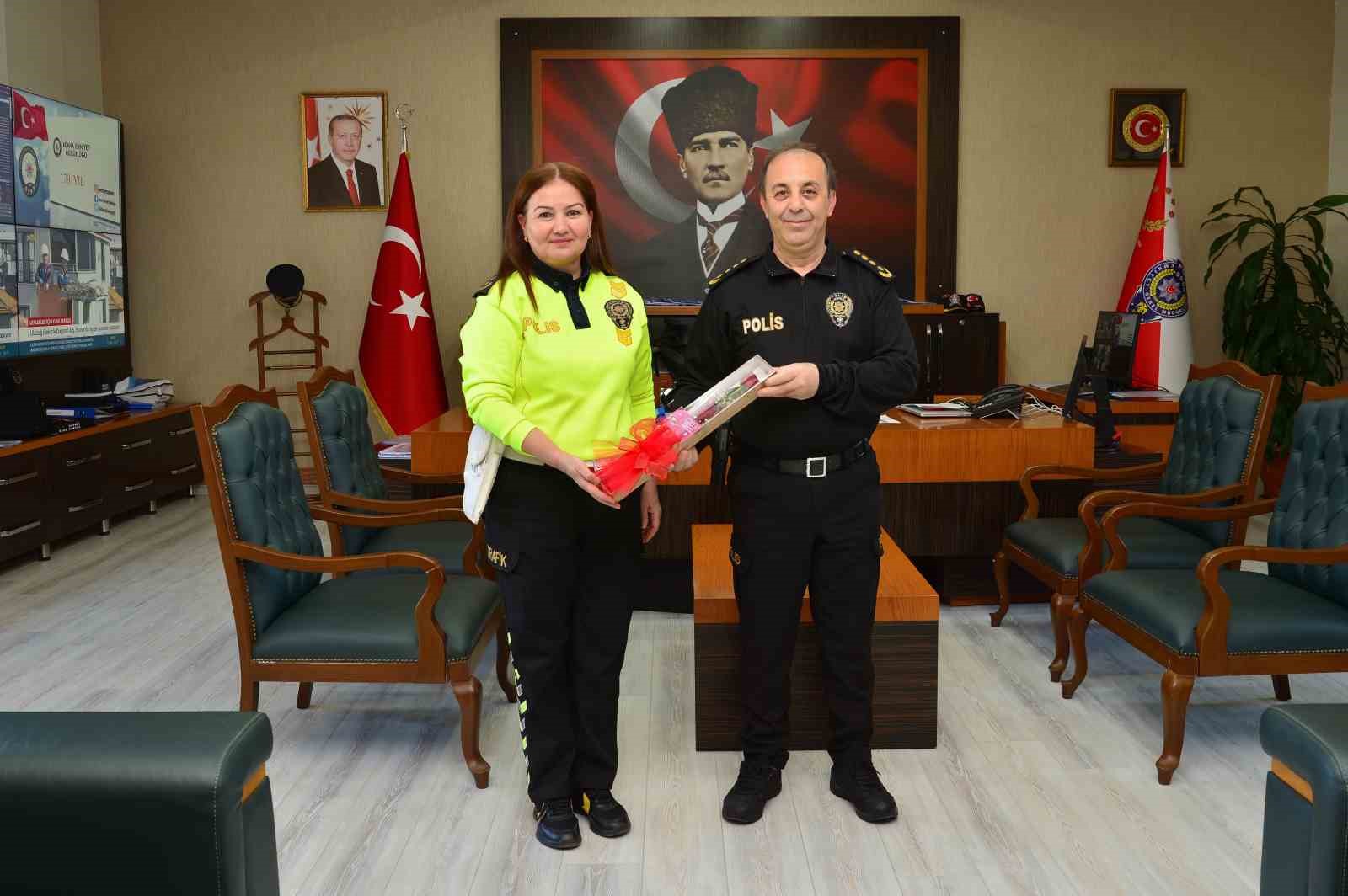 8 Mart Dünya Kadınlar Günü’nde kentinden görev yapana 602 kadın polisi unutmayan İl Emniyet Müdürü Ahmet Hakan Arıkan, kadın polisleri makamında ağırladı. Kadın polislerle birebir konuşan Arıkan, günlerini kutlayıp kırmızı karanfil verdi.