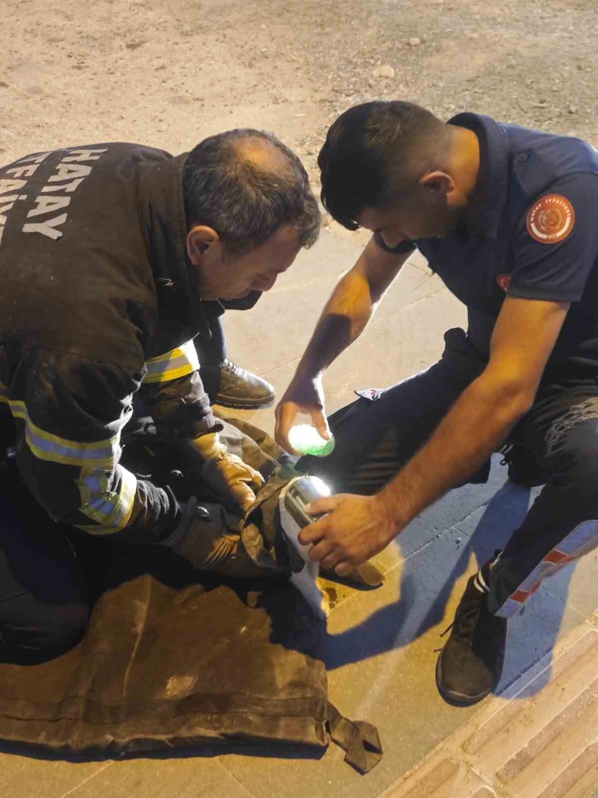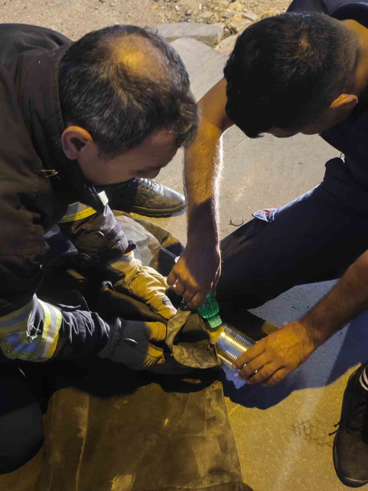 Hatay’da kafasını konserve kutusuna sıkıştıran kedi, itfaiye ekipleri tarafından kurtarıldı.