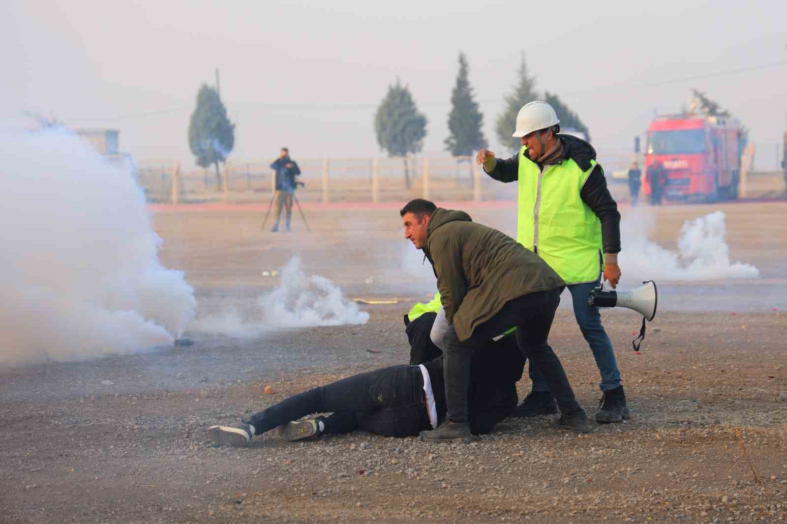 Tatbikat senaryosunda, izinsiz bir gösteriye müdahale edilmesi canlandırıldı. Göstericiler rolündeki grup, biber gazı, taş ve sopalarla polis ekiplerine saldırırken, güvenlik güçleri gerçek bir olayda uygulanacak müdahale yöntemlerini hayata geçirdi.