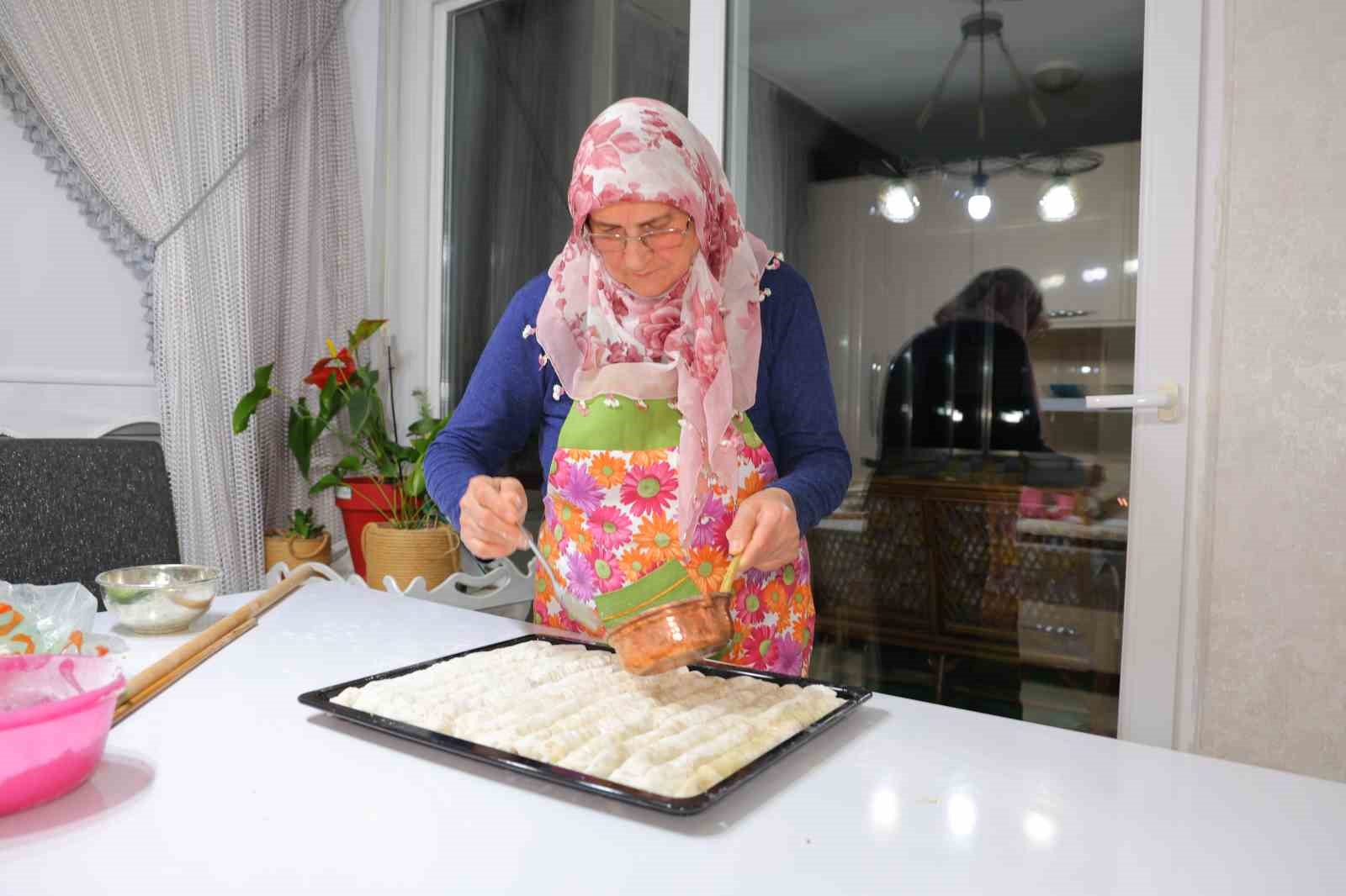 Kahramanmaraş’ta Ramazan Bayramı dolayısıyla ev hanımları geleneksel Maraş kıvrım tatlısı yapıyor.