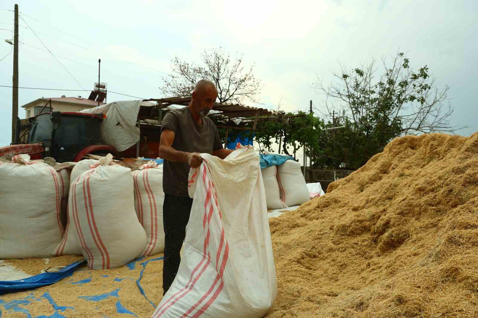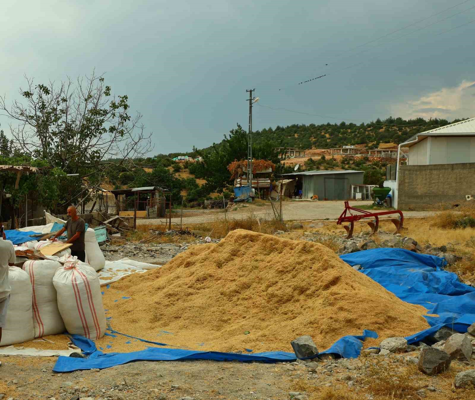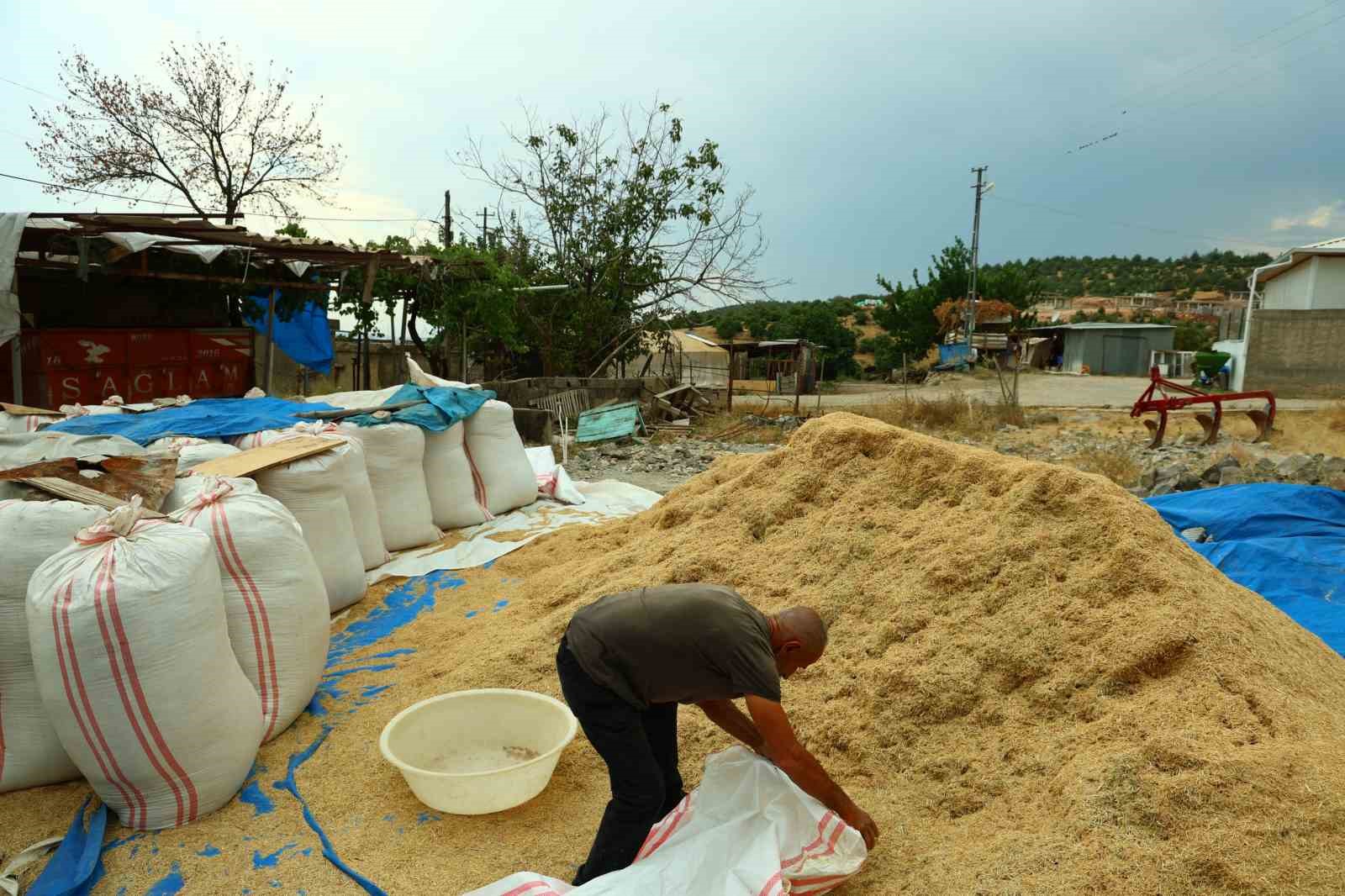 İbrahim Sevi adlı vatandaş, “Bizim geçimimiz hayvancılık ve çiftçilikle oluyor. Köyümüz deprem sonrası mahvoldu önceden çok güzeldi. Şu anda yaptığımız kış mevsiminde hayvanlara vermek için samanları çuvallıyoruz. Bunlar tarladan sap ve saman ayrılıp patostan geçtikten sonra elde ediliyor” dedi.