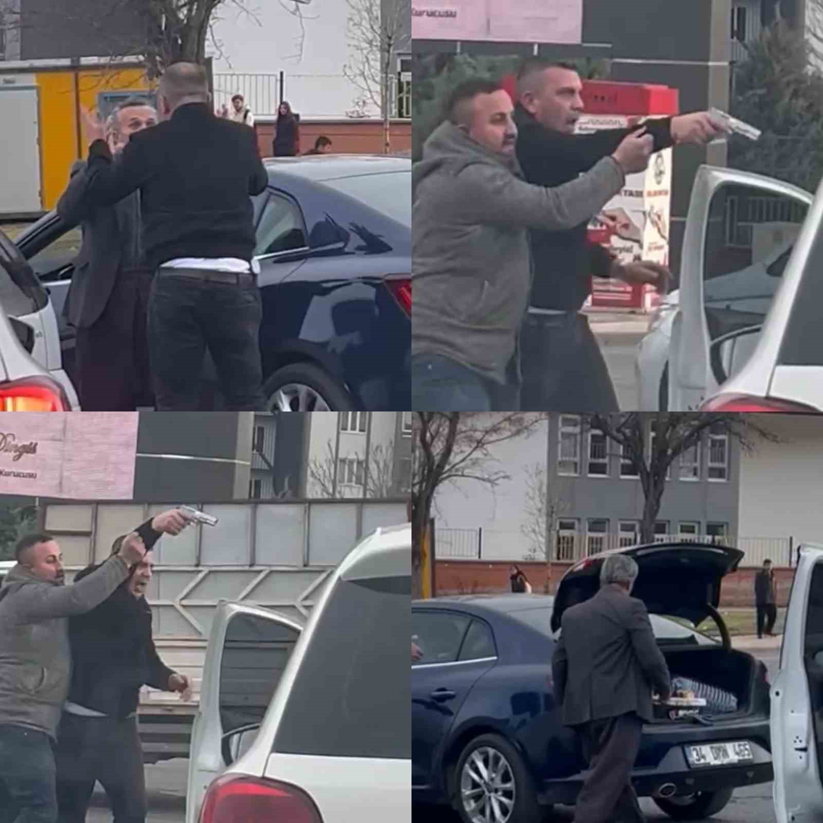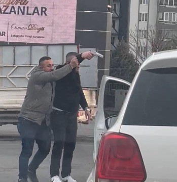Kahramanmaraş’ta trafikte çıkan tartışmada bir sürücü kavga ettiği adamı silahla tehdit etti. O anlar, bir vatandaşın cep telefonu kamerasına yansırken, çevredeki vatandaşların müdahalesiyle kavga sonlandı.