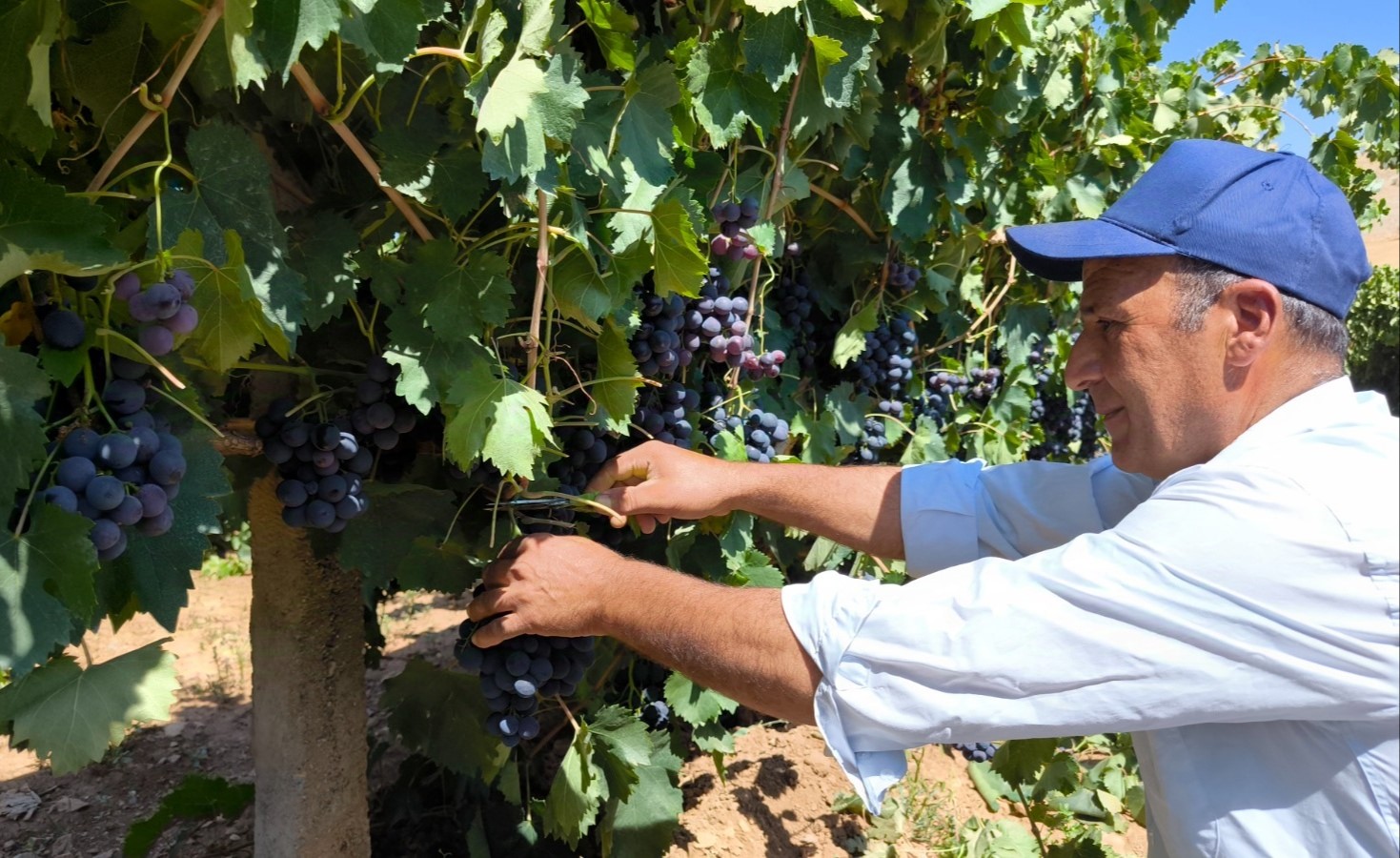 Kahramanmaraş’ın Afşin taraflarında yetiştirilen üzümü televizyonda görüp yetiştirmeye başlayan bir kişi, 8 dönüm alanda 4 ton üzüm hasadı yaptı.
