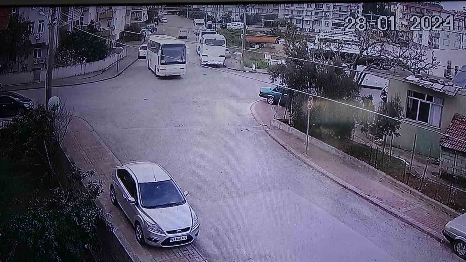 Kaza anı güvenlik kamerasına saniye saniye yansıdı. Görüntülerde, seyir halindeki otomobilin sürücüsünün, otobüsü son anda fark ederek fren yerine gaza bastığı, park halindeki otobüs ile aydınlatma direği arasından geçerken çöp konteynerine çarparak yavaşladığı, aşağıya uçmak yerine son anda kaldırımda devam ederek otobüslere çarptığı görüldü.