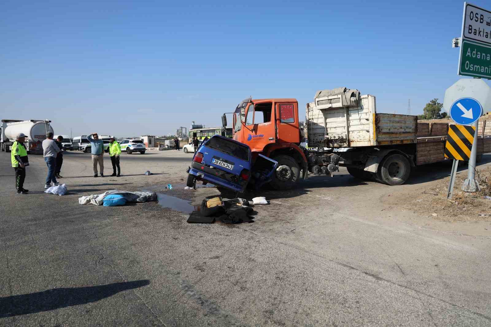 Adana’da kamyon ile otomobilin çarpışması sonucu meydana gelen trafik kazasında, otomobil sürücüsü Özge Nur A. ağır yaralanırken, yolcu konumundaki Sabriye Gizem Aksu ise hayatını kaybetti.