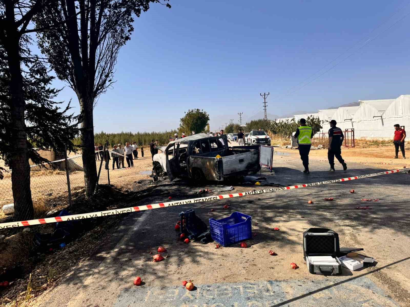 Kaza, öğle saatlerinde Elmalı ilçesine bağlı Bayralar Mahallesi yolu üzerinde meydana geldi. Aytaç Özen’in kullandığı 07 BIF 075 plakalı motosiklet ile Hüseyin Sarıca yönetimindeki 07 Z 5826 kamyonet çarpıştı. Çarpmanın şiddetiyle motosiklet ile kamyonet alev aldı. İhbar üzerine kaza yerine itfaiye ekipleri yönlendirildi. Kazada, kamyonette bulunan İbrahim Solmaz ile motosiklet sürücüsü Aytaç Özen yaşamını yitirdi. Yaralanan Hüseyin Sarıca ise Elmalı Devlet Hastanesi’ne götürülerek tedaviye alındı. Ölenlerin cansız bedenleri, morga götürüldü.