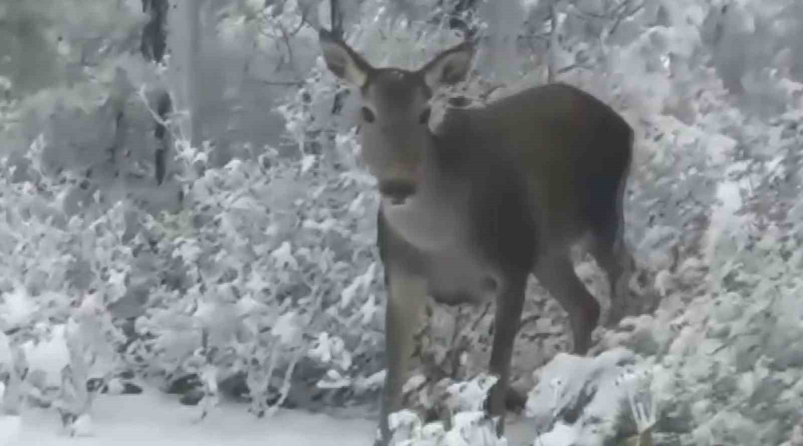 Çarşamba günü kentte etkisini gösteren yoğun kar yağışı sonrası beyaza bürünen Eşeler Yaylası’nda yemek arayan kızıl geyikler yol kenarına inerek bölgeden geçen vatandaşlara hem kendilerini sevdiriyor hem de vatandaşların verdiği meyvelerle karınlarını doyuruyor.
