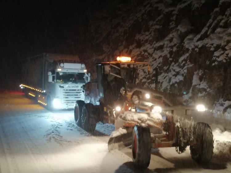 Karayolları ekipleri çok sayıda iş makinası ile yolun açık tutulmasını sağladı. Bölgede kar kalınlığı yer yer 10-15 santimetreye ulaşırken, karayolları Alacabel ekibi çok sayıda iş makinaları ile kar kürüme ve tuzlama çalışması yaparak yolun trafiğe açık tutulmasını sağladı.