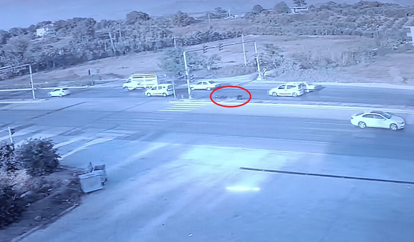 Güvenlik kamerasına saniye saniye yansıyan kazada, çarpmanın ardından motosikletiyle birlikte savrulan ve metrelerce sürüklenen motosiklet sürücüsü kazayı başındaki kask sayesinde burnu bile kanamadan atlattı.