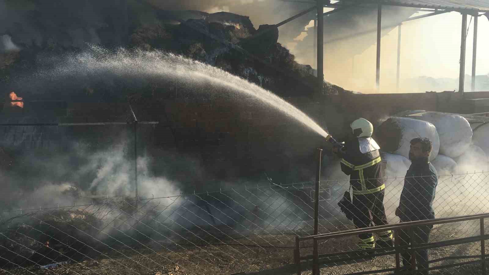 Burdur’un Bucak ilçesinde kaynak yapıldığı esnada makineden sıçrayan kıvılcımların samanları tutuşturması nedeniyle çıkan yangında 750 saman balyası kül oldu.