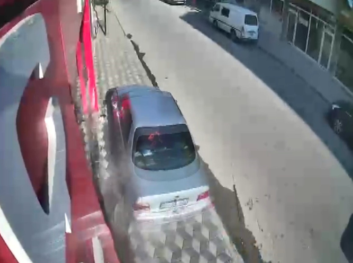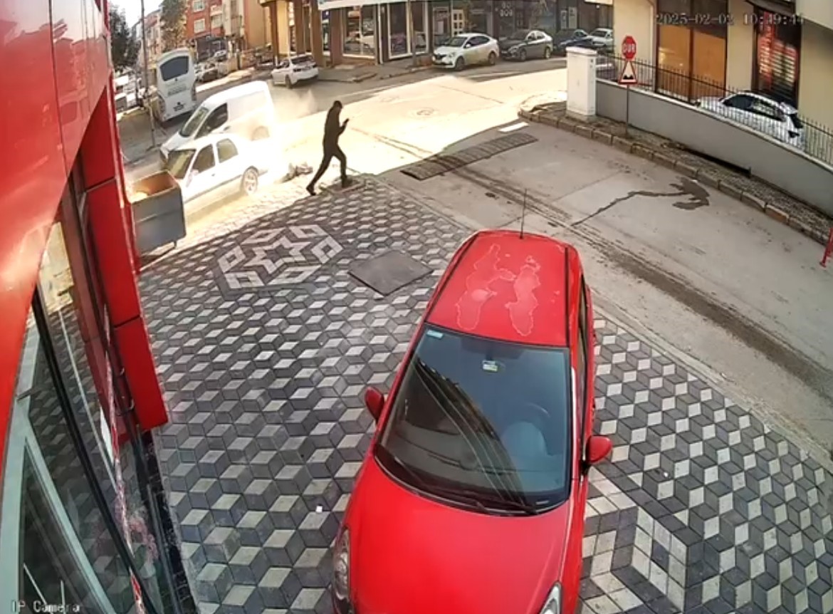 Kaza anı güvenlik kamerasına saniye saniye yansıdı. Görüntülerde kaldırımda telefonla konuşarak yürüyen yayanın, yol ayrımına geldiği sırada çarpışan araçların altında kalmaktan saniyelerle kurtulduğu anlar yer aldı. Kazayla ilgili inceleme başlatıldı.