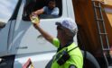 Polis ekipleri tır ve motosiklet sürücülerine bilgilendirici broşür dağıttı