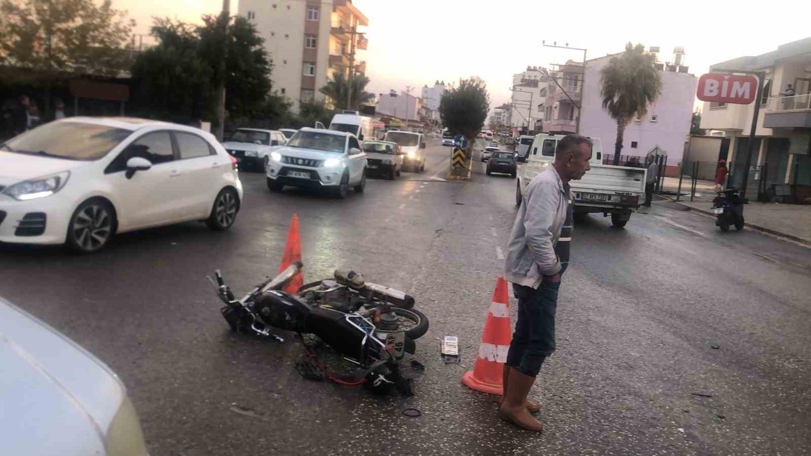 Antalya’nın Serik ilçesinde otomobil ile motosikletin çarpıştığı kazada yaralanan kadın yolcu gözyaşlarına boğulurken, çevredeki vatandaşlar tarafından teselli edildi.