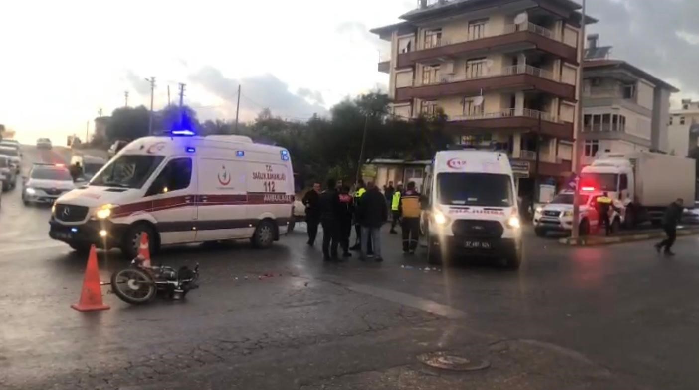 Kaza, Akçaalan Mahallesi Tuzlaburun Caddesi üzerinde meydana geldi. Edinilen bilgiye göre, Karadayı Mahallesi istikametine giden Şekibe M.’nin kullandığı 06 LNT 47 plakalı otomobil, kavşakta Hüseyin K.’nin kullandığı 07 YKP 46 plakalı motosikletle çarpıştı. Kaza sonrası ihbar üzerine olay yerine 112 Sağlık ve polis ekipleri sevk edildi. Motosiklet sürücüsü Hüseyin K. ile aynı motosiklette yolcu olarak bulunan ve ismi öğrenilemeyen yaralı kadın yolcu, yapılan ilk müdahalenin ardından ambulans ile hastaneye kaldırıldı. Yaralı kadın yolcu gözyaşlarına boğulurken, çevrede bulunan vatandaşlar tarafından teselli edildi.