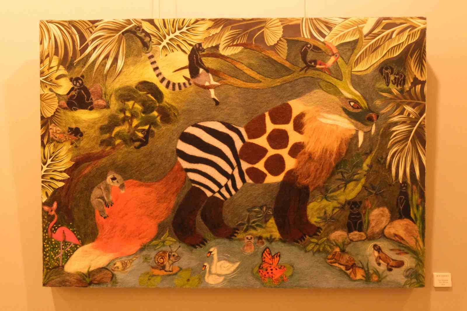 Türkiye’de bir ilki gerçekleştirdiklerini dile getiren Coşgun, şöyle devam etti: “Beni ben yapan her şey var aslında burada. Sergi, bütün doğal yaşamı, hayvanları ve canlıları ile birlikte tüm hayatı temsil ediyor. Küçüklüğümden bugüne izlediğim filmler başta olmak üzere beni ben yapan, yaşadığım temalar buna katkı sağlıyor. Eserlerde de bunları görüyoruz. Bu sanatı 6 yıldır yapıyorum ama burada 4 yıllık bir birikim söz konusu. Eserlerin ortaya çıkması elbette uzun zaman alıyor. 2 yıldır da galerilerde ve sergilerde yer almaya çalışıyorum. Tekstil mühendisliği bana bu konuda öncelikle ana materyalimi kazandırmış oluyor. Bu tekniği ilerletmek ve dünyaya yaymak istiyorum. Yünden ilerlemeyi planlıyorum. Tekniğim hep aynı olacak ama yün üzerine farklı şeyler denemeyi istiyorum. Yün evrilebilir bir materyal. Aslında 2 boyutlu bir materyal ama bunu 3 boyutlu bir şekilde görebiliriz. Burada gördüğünüz eserlerin tamamında da doku ve derinlik hissi mevcut ancak hikayeler değişiyor. Hikayeler ve karakterler her zaman farklı bir seride yeniden bir araya geliyor.”