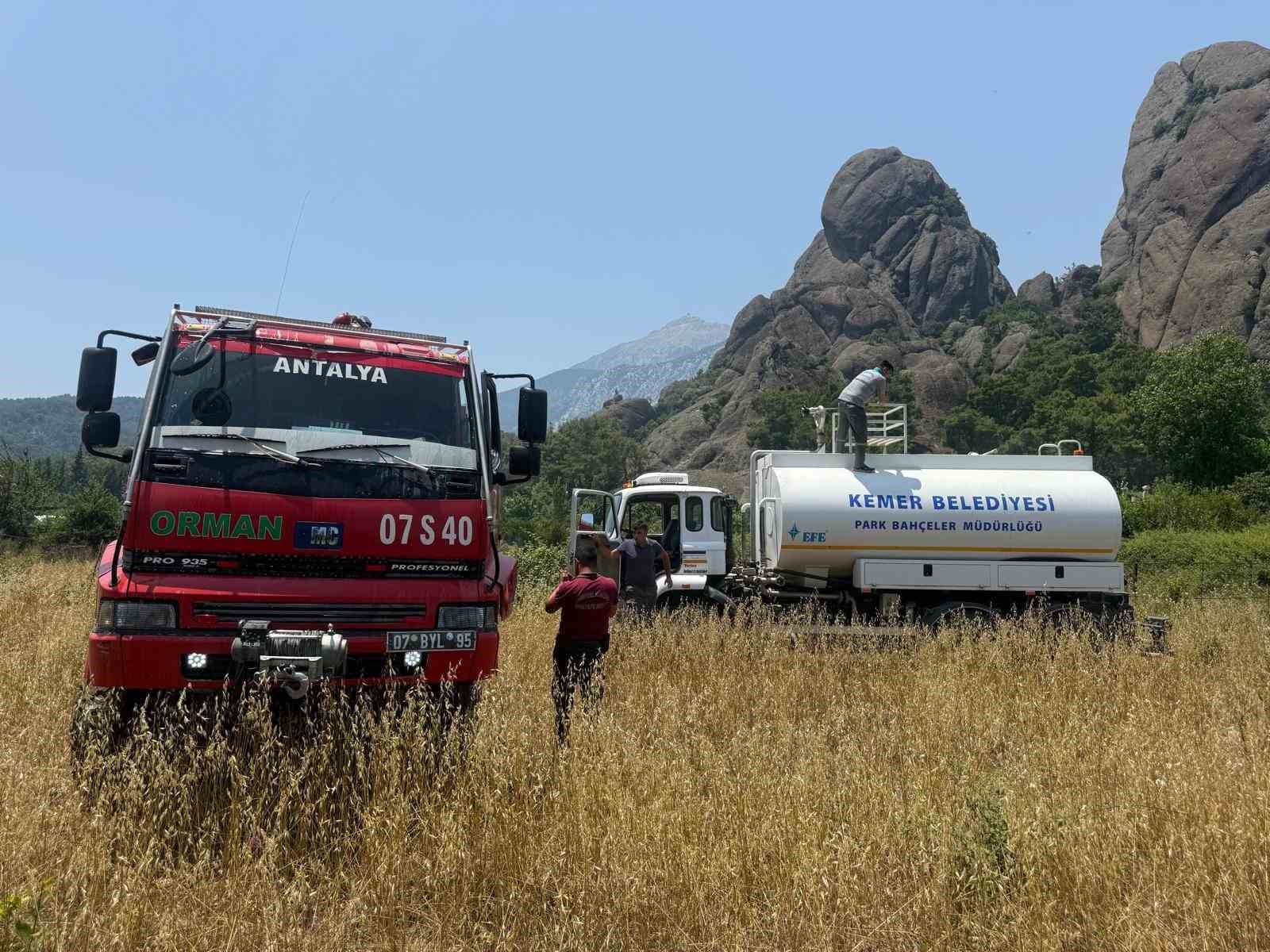 Kuzdere Mahallesi Karataş mevkiisinde henüz öğrenilemeyen bir nedenle çalılık alanda çıkan yangını gören vatandaşlar, durumu itfaiye ekiplerine bildirdi. Olay yerine gelen itfaiye ekipleri yangına müdahale ederek söndürdü. Jandarma ekipleri ise çevrede güvenlik önlemi aldı. Kemer Belediyesi Park ve Bahçeler Müdürlüğü’ne ait su tankeri ile belediye personeli, itfaiye ekiplerine destek verdi. Yangın sonrası soğutma çalışmalarının devam ettiği belirtildi.
