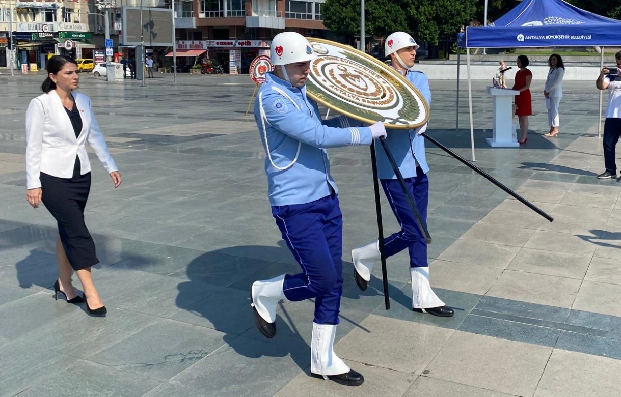 Antalya’da Kıbrıs Barış Harekâtı’nın 51. Yıldönümü’nde KKTC’nin 20 Temmuz Barış ve Özgürlük Bayramı nedeniyle konuşan KKTC Antalya Başkonsolosu Aslı Erkmen tarafından Atatürk Anıtı’na çelenk sunuldu.