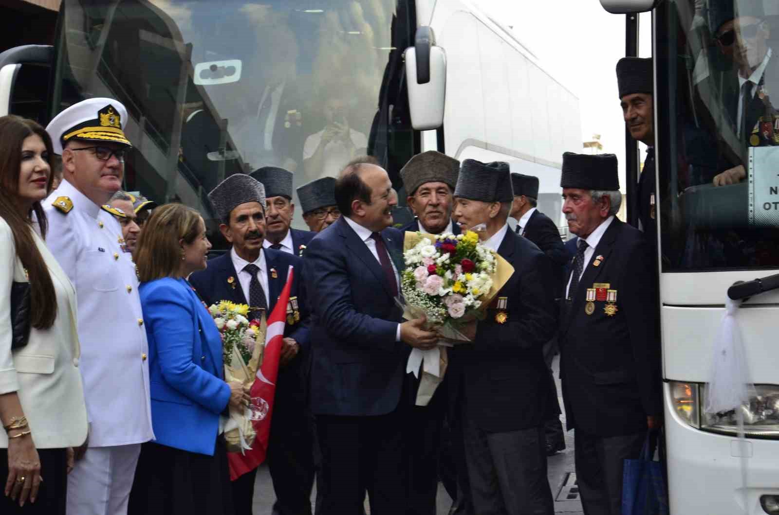Vali Ali Hamza Pehlivan da. “Şu anda bir gurur tablosu içerisindeyiz. Kahraman gazilerimizle birlikteyiz. Onlar aziz şehitlerimizin yol arkadaşları. Onlarla gurur duyuyoruz. Gazilerimizle gurur duyuyoruz. Onlar bize şanlı ecdadımızı anımsatıyor. Kahraman ecdadımızı anımsatıyor. Malumunuz tarihte şanlı başarılarıyla damga vurmuş bir milletin, bir medeniyetin mensuplarıyız. Ve bugün tarihi bir anı Mersin Limanı’nda yaşıyoruz. Biraz sonra gazilerimizi Kuzey Kıbrıs Türk Cumhuriyeti’ne uğurlayacağız. Tıpkı 50 yıl önce gene bu kıyılarda, bu limanlarda Kıbrıs’a yol aldıkları gibi bugün de aradan geçen 50 yılın ardından bir seyahat gerçekleştirecekler” dedi.