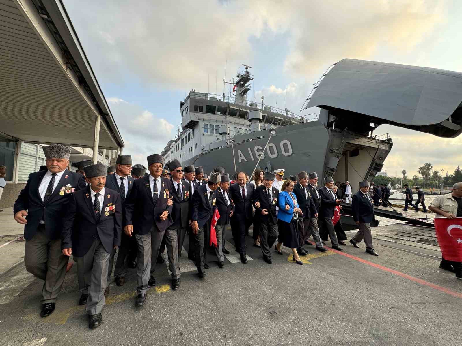Aile ve Sosyal Hizmetler Bakanlığı Şehit Yakınları ve Gaziler Genel Müdürlüğü tarafından Kıbrıs Barış Harekatı 50. Yıl Programı çerçevesinde Türkiye Muharip Gaziler Derneği tarafından belirlenen 90 gazi, Mersin Limanı’nda düzenlenen törenle uğurlandı.