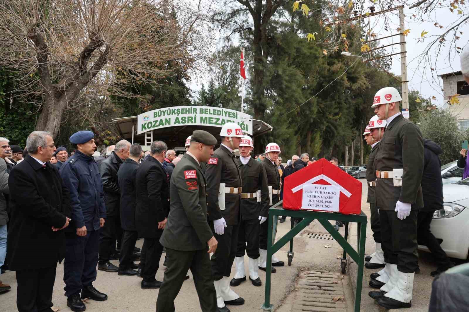 Adana’nın Kozan ilçesinde yaşayan ve tedavi gördüğü hastanede hayatını kaybeden 78 yaşındaki Kıbrıs Gazisi Rafet Yurdadoğ, askeri törenle son yolculuğuna uğurlandı.