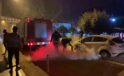 Park halinde otomobilde çıkan yangın söndürmek için mahalleli seferber oldu