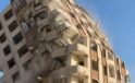 8 katlı bina iş makinesinin darbesiyle kağıt gibi yerle bir oldu